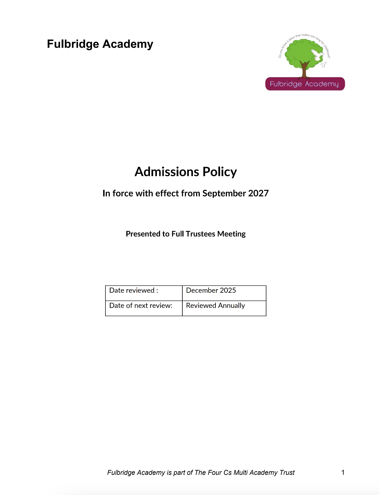 Comments on the admission policy should be sent to the Headteacher via office@fulbridgeacademy.co.uk with the subject line: ‘Admissions Consultation’.