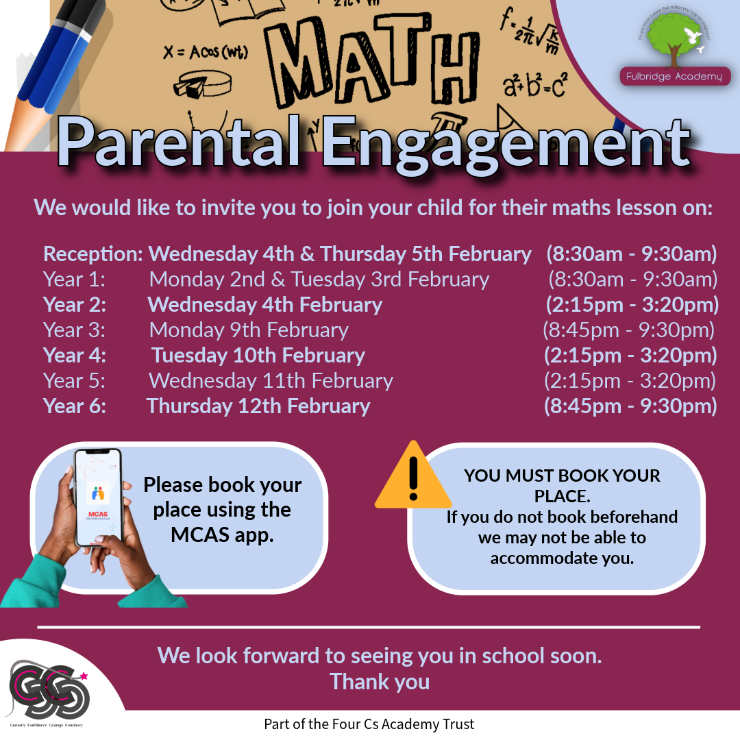 Please ensure you book your place on the MCAS app for one parent/carer only.