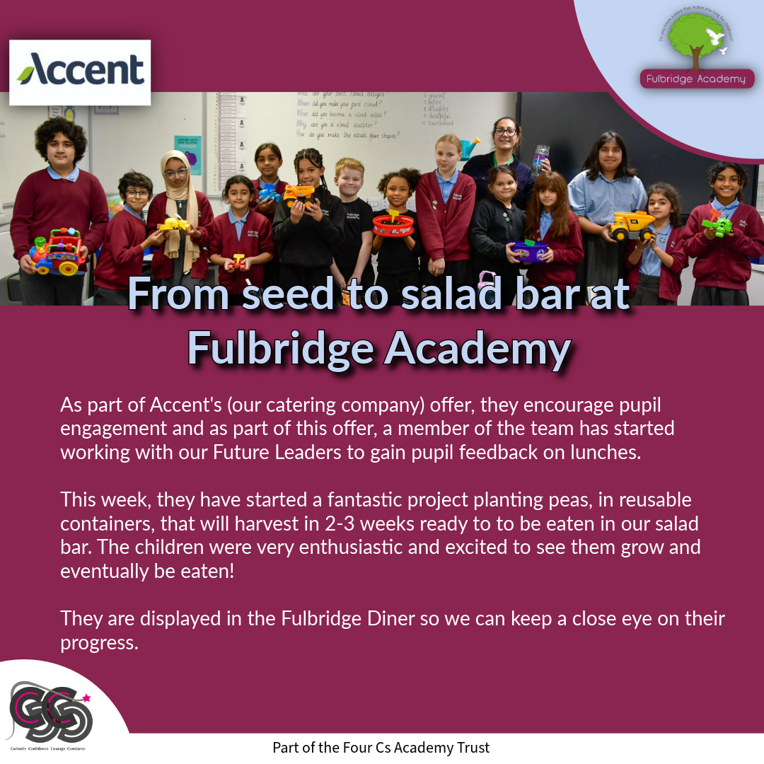 As part of Accent's (our catering company) offer, they encourage pupil engagement and as part of this offer, a member of the team has started working with our Future Leaders to gain pupil feedback on lunches.