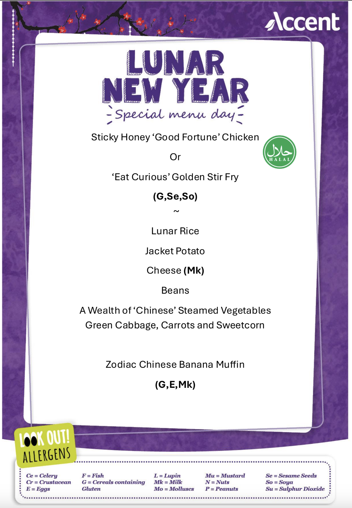 Our catering team, Accent, is thrilled to offer a special lunch menu in celebration of the Lunar New Year on Thursday 12th February. We invite all children and adults to enjoy this special lunch menu.