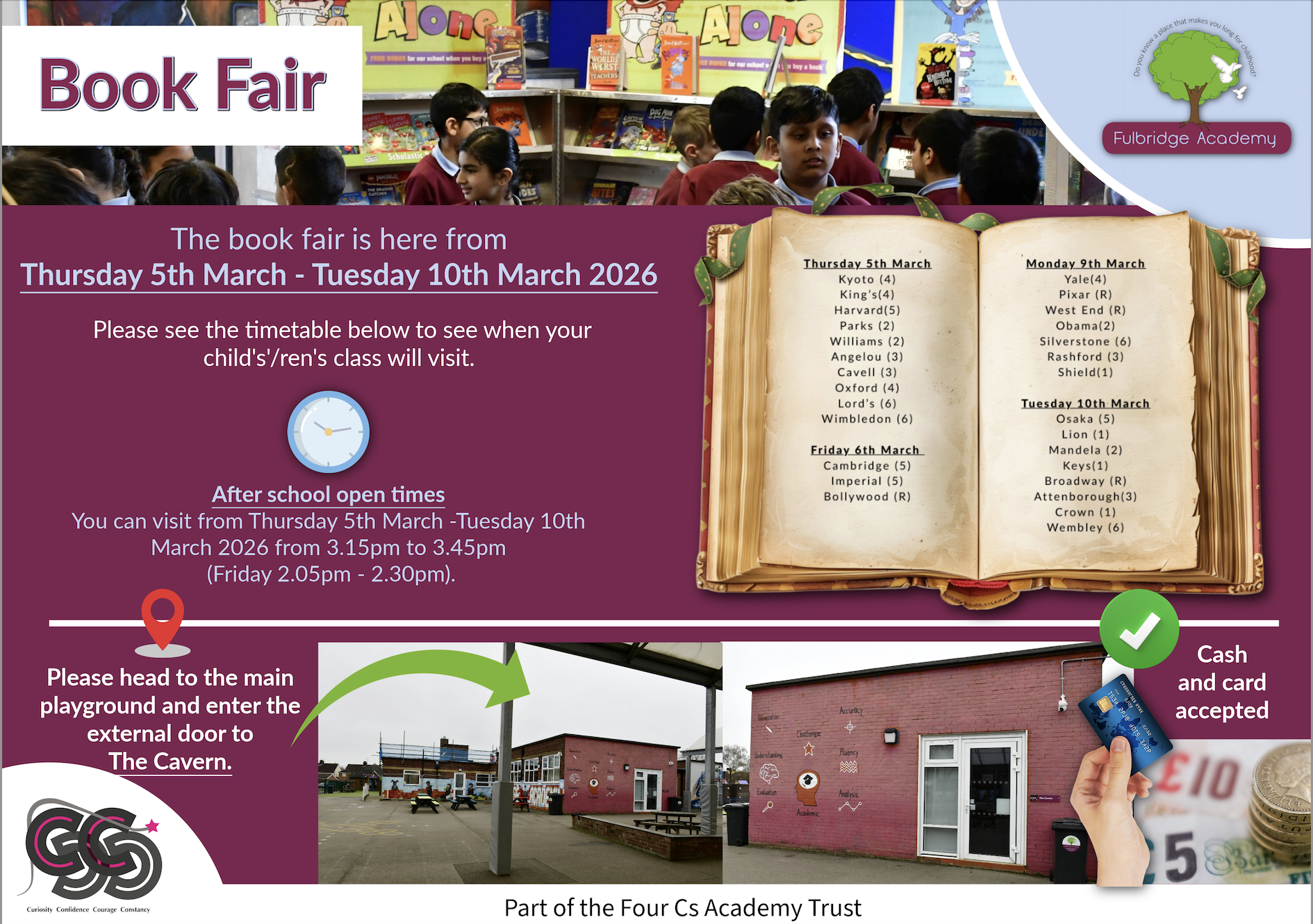 Parents/carers and children can visit from Thursday 5th March -Tuesday 10th March 2026 from 3.15pm to 3.45pm and Friday 2.05pm - 2.30pm.