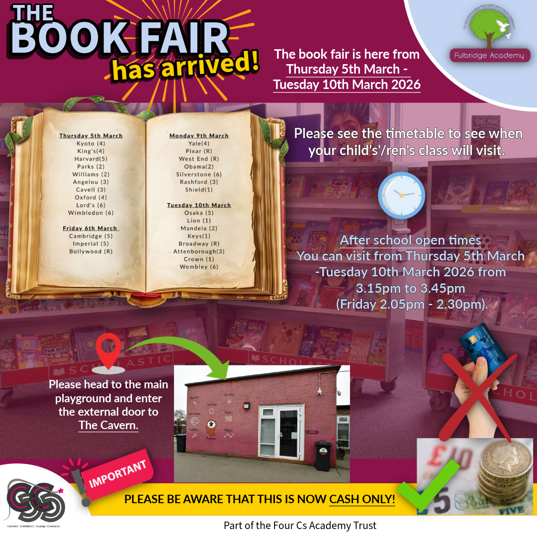 Parents/carers and children can visit from Thursday 5th March -Tuesday 10th March 2026 from 3.15pm to 3.45pm and Friday 2.05pm - 2.30pm.