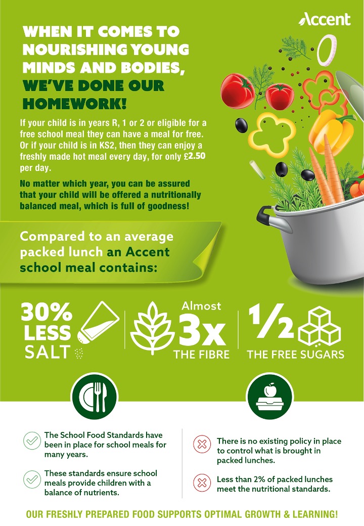 For parents/carers that pay for your child’s meals, this will cost £2.60 per day.
