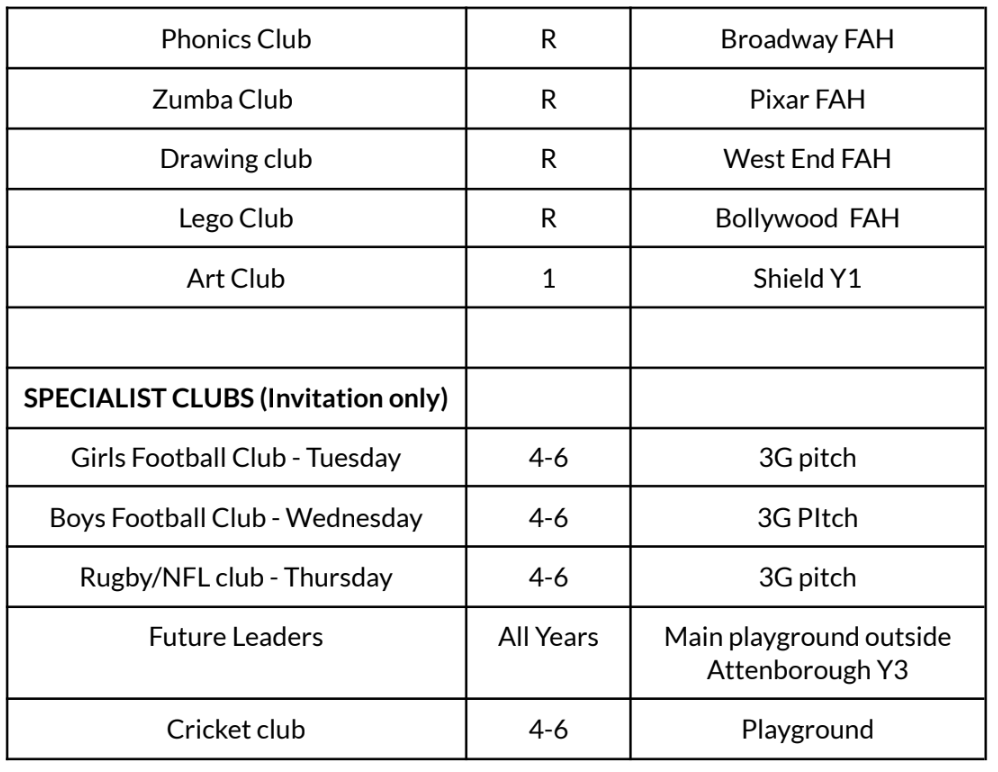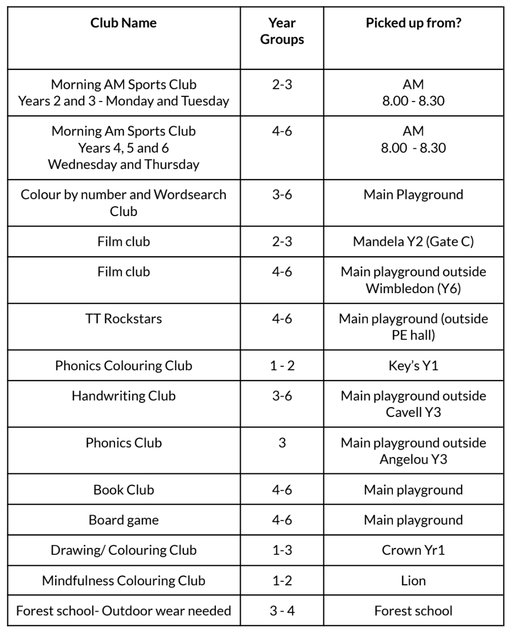Please see the 'Clubs' letter below for more details on how to book your child's/ren's place.